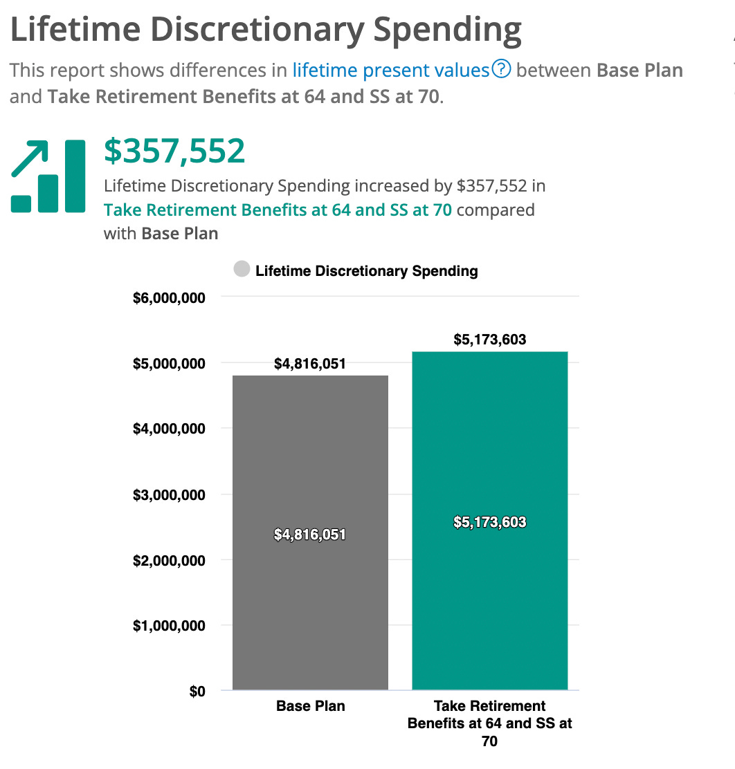 Congress has just passed The Secure 2.0 Act. The new law has a number of provisions, including several that expand voluntary and increase mandatory contributions. But the big banana, which Wall Street loves, is the ability of retirees to defer taxable withdraws from their IRA accounts from the current age 72 to 73 in 2023, if you reach 72 in that year or later, and to 75 starting in 2033.The acronym RMD refers to Required Minimum Distribution. If you are retired and reach your RMD start age, you need to take withdraws on a fixed schedule. Say you are 72 on December 31st of this year and had $1 million on December 31, 2021 in your IRA. Then your distribution period (assuming you qualify for the standard table) is 27.4 years. Dividing $1 million by 27.4 equals $37,037. This is the smallest amount you need to withdraw from your IRA in 2022. Next year, you’ll be 73. The current age-73 factor is 26.5. So if the table doesn’t change, you’ll need to withdraw whatever’s in your IRA at the end of this month divided by 26.5. Etc.Being able to wait till 75 to start withdrawals means, of course, deferring payment of taxes on your IRA balance and its accruals. That’s the tax deferral advantage of IRAs. The downside is that by waiting to withdraw, you reduce your cash flow. You also clump your withdrawals into fewer years meaning you can wind up in a higher tax bracket when you start cashing out.We know that deferring withdrawals is nice for Wall Street, which can keep its fee-charging paws on your money. But does it make sense for you? The answer depends, of course, on your particular financial situation. But here’s an example of a hypothetical couple for whom waiting even beyond age 64 to start withdrawals would be a major mistake. (Full disclosure. I ran this couple through my company’s MaxiFiPlanner software.)Meet NY couple, Jolene and Jeremy Jones. Their hypothetical friends call them the Jays. Both Jays are 62, both earn $250,000, both will retire at 64, both will take their Social Security retirement benefit at 64, and both intend to start IRA withdrawals at 75. The couple met in accounting class, fell immediately in love with each other’s Montblanc pens, and decided to live happily ever after. Their nuptials included mutual vows to minimize their taxes. The couple has no children, but three mastiffs, who eat a lot.The Jays are clearly a power couple. Each has $3 million in their 401(k). They also have $250K in regular (non-retirement-account) assets. Plus they own, free and clear, a $2.5 million home in tony Chappaqua. The two figure on earning 1.5 percent above inflation on their investments. (That’s roughly the current real return on 30-year TIPS (Treasury Inflation Protected Securities.) And, given they’ll jointly be hawing in close to $80K in inflation-indexed Social Security benefits, they’re thrilled that they can now wait until age 75 to start their IRA withdrawals. (Note, they’ll convert their 401(k)s to IRAs at retirement.)But the Jays need to switch pens. Better yet they need to run MaxiFi. Check out the dotted line in the chart below. It shows the Jays’ living standard per person under their game plan. Clearly, waiting till 75 to begin IRA withdrawals leaves the couple terribly cash-constrained. And, to tell the truth, both Jays are getting rather long in the tooth. They want to Bridge-party on down before dropping dead.The Jays know plenty about taxes. They know nothing about benefits, particularly the huge return from waiting till age 70 to start Social Security. Clearly, if they wait till age 70 to take Social Security and till age 75 to start IRA withdrawals, they’ll have bubkes to live on between 64 and 70. An alternative is to switch things around — take Social Security at 70, but start smoothly withdrawing from their IRAs at 64. The result is the solid green curve in the chart. Note that their cash-flow problem has disappeared. They can spend $166,265, in today’s dollars each year through age 100 were they to live to this assumed maximum age of life.But does this plan raise their lifetime spending valued in the present (measured in present value)? It does — by a whopping $357,552! as the second chart shows. That’s roughly what the Jays are jointly earning this year after taxes. Thus, simply by changing two financial decisions, they can earn what would take them a year’s full-time work to earn. That’s Money Magic!